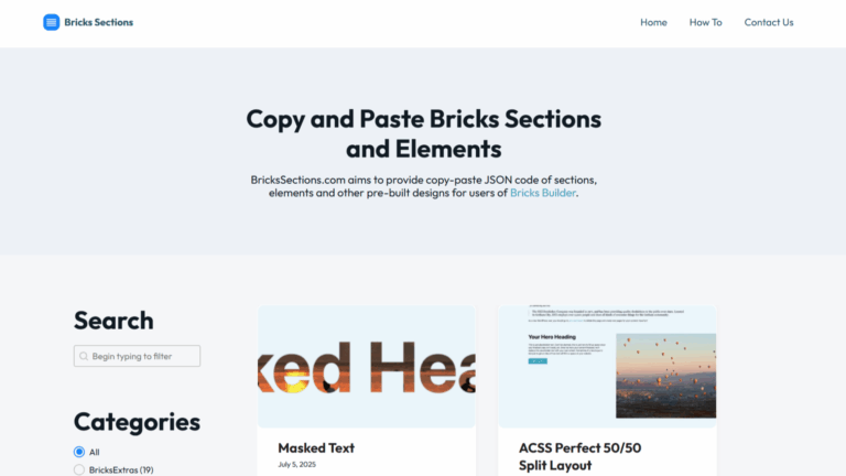 Bricks Sections is a dedicated directory that provides copy-paste JSON code for components, layouts, and other pre-built designs for Bricks Builder users.