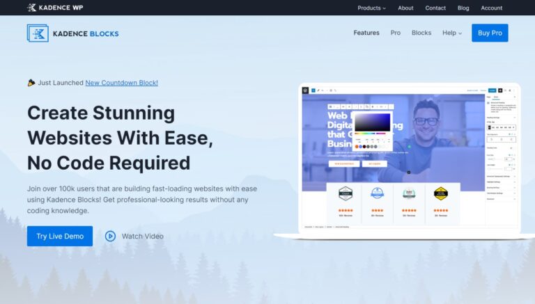 Kadence Blocks adds custom blocks and options to extend Gutenberg’s editing capabilities so you can create stunning websites with ease – no code required.
