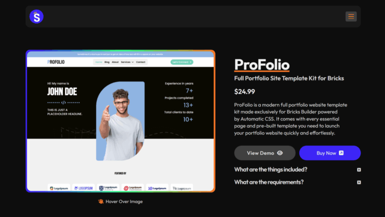 ProFolio streamlines portfolio site-building by combining modern functionality, polish, and ease of use exclusively within the Bricks Builder ecosystem powered by Automatic CSS. This makes launching a high-quality, customizable portfolio site fast and hassle-free.