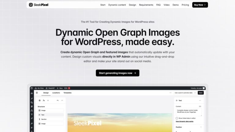 With its intuitive drag-and-drop editor, similar to Canva, SleekPixel allows you to design custom visuals that automatically incorporate and update with your site’s content, such as post titles and featured images.