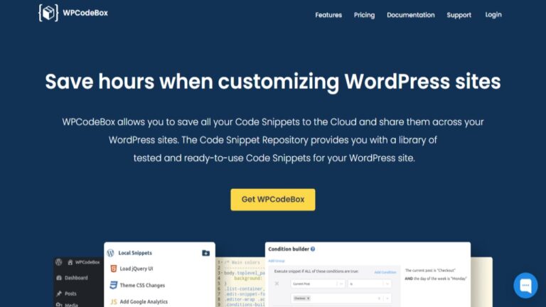 WPCodeBox allows you to save all your Code Snippets to the Cloud and share them across your WordPress sites. The Code Snippet Repository provides you with a library of tested and ready-to-use Code Snippets for your WordPress site.