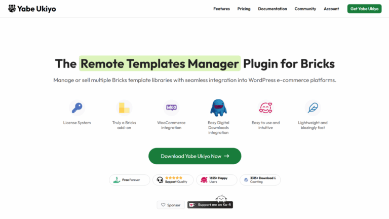 Yabe Ukiyo is a WordPress plugin designed for Bricks builders as a remote templates manager. It allows designers and developers to reuse their template libraries across different projects. The plugin also includes e-commerce integration.