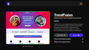 TrendFusion is a retro-styled full WooCommerce website template kit for Bricks Builder powered by Automatic CSS.